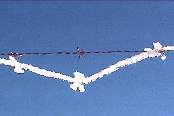 find. Here, the ice crust mold of this barbed wire has slumped in the sun to